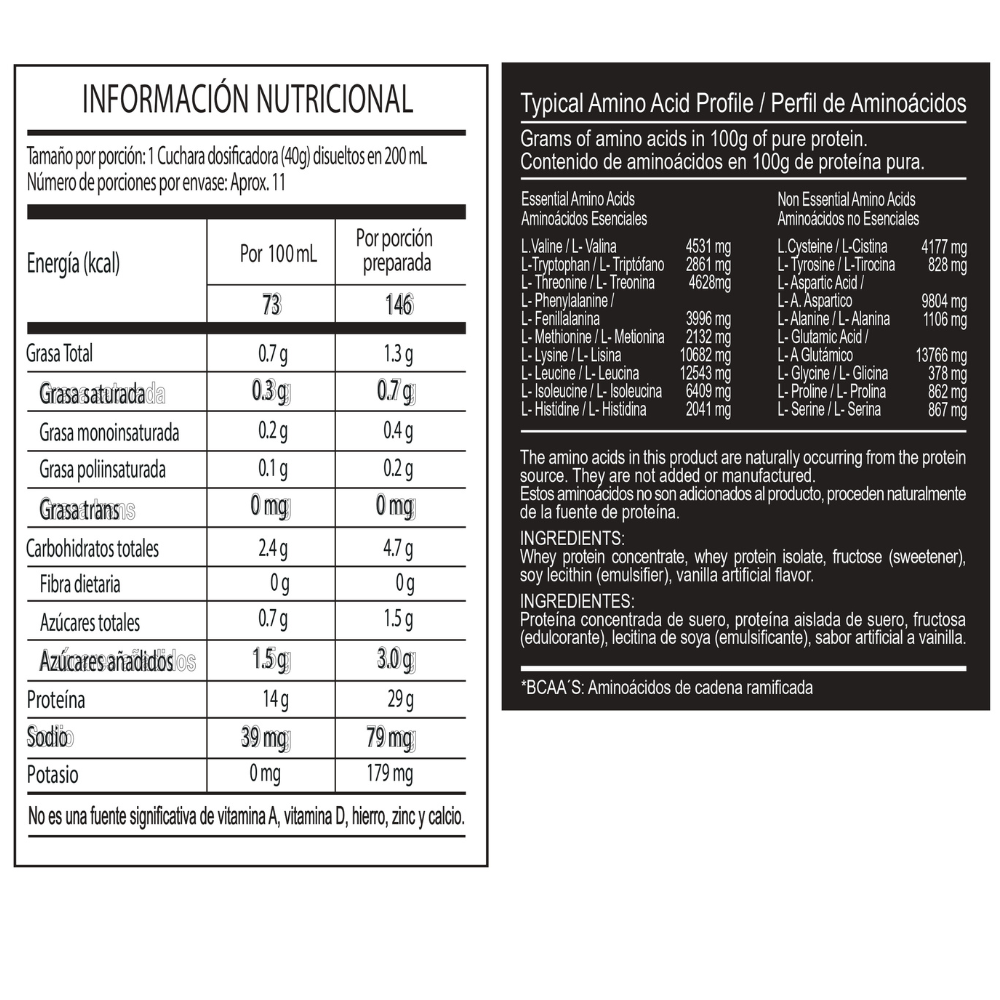 Disponible en sabor vainilla gourmet, su textura cremosa y fácil preparación: Solo mezcla una cuchara dosificadora (40 g) con agua, leche o jugo, agita y listo; tendrás un batido cremoso y nutritivo en segundos —ideal justo después de entrenar largos kilómetros. Tómalo justo después del entrenamiento para maximizar la recuperación muscular, acelerar la síntesis proteica y potenciar tu rendimiento.
